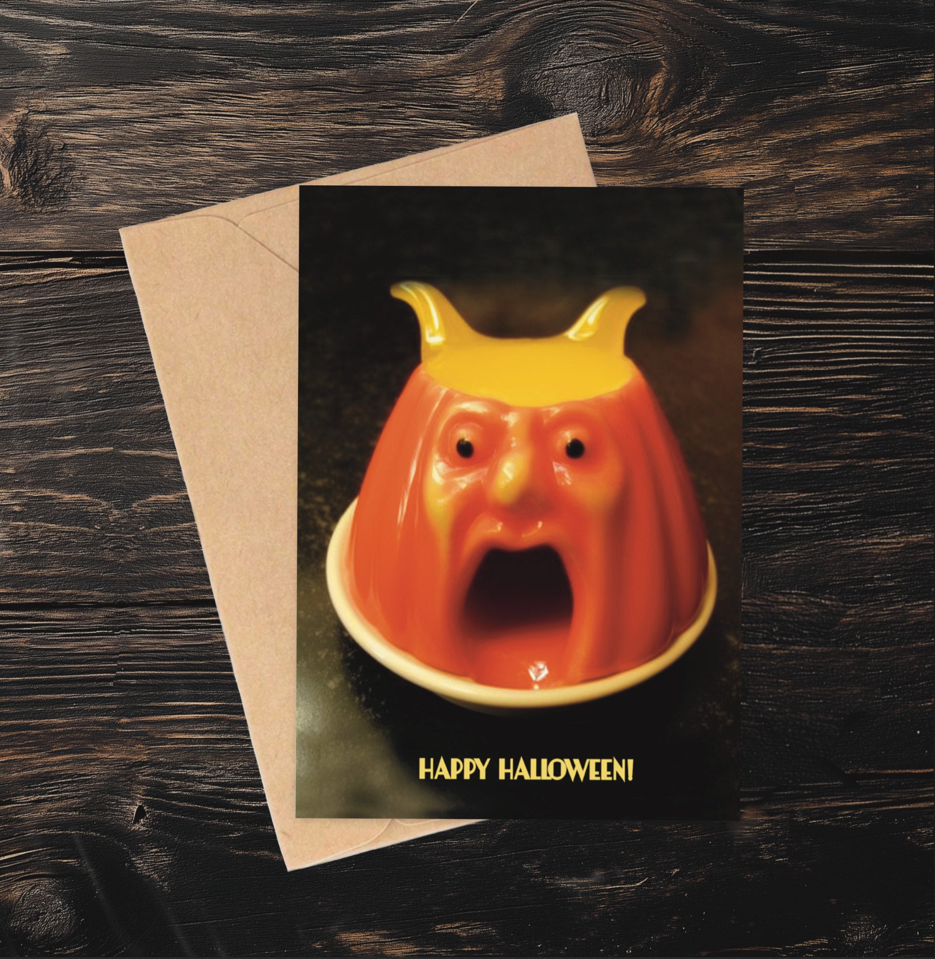 In the dim glow of a 1970s dinner party, the strange orange creature sits at the center of the table, its glossy surface glistening under the light. Nestled between chintzy floral plates and wobbling pink blancmange, it feels out of place, with an unnatural sheen that seems to pulse with mischief. Its unnatural hue catches the eye, promising something far more sinister than a simple taste…