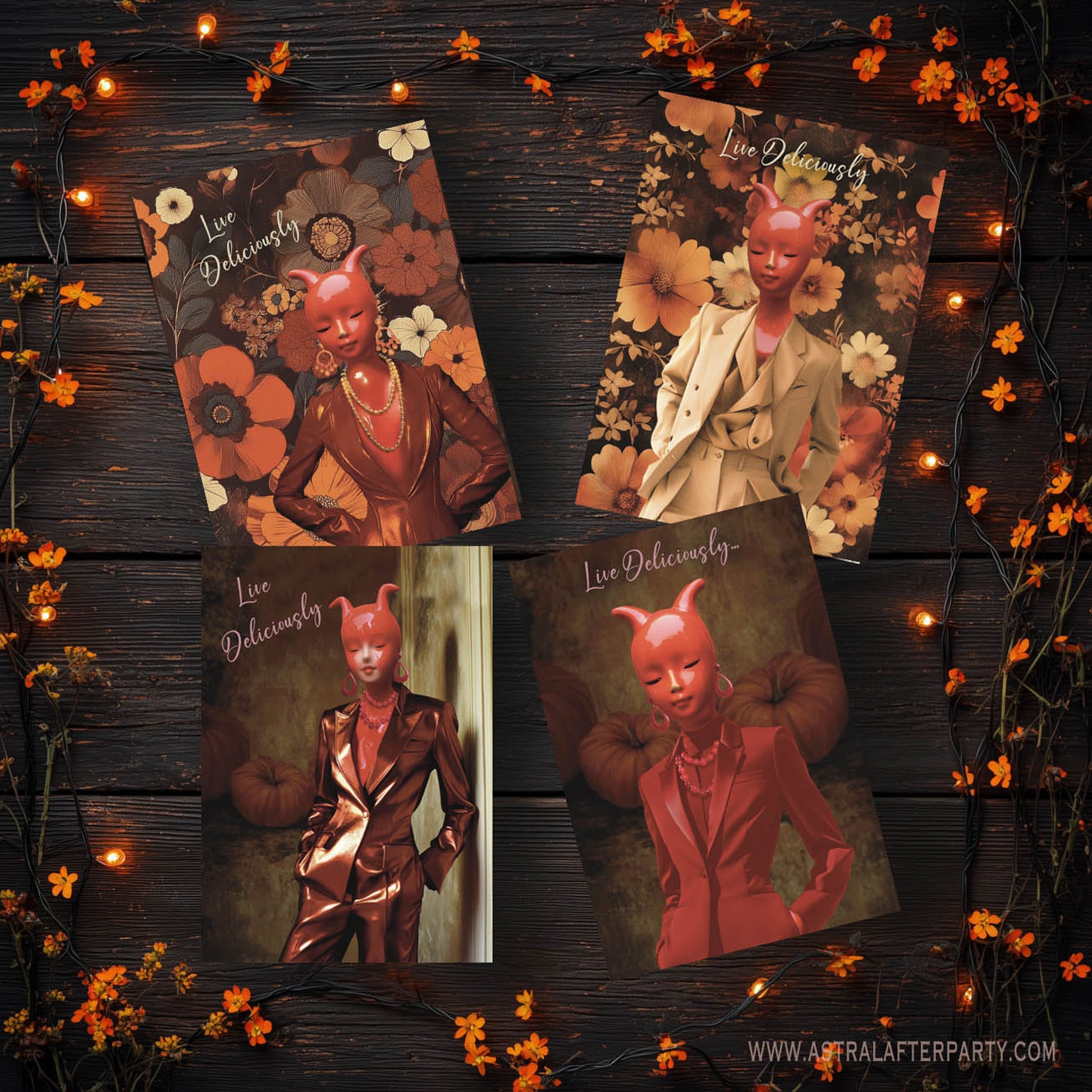 Let your favourite 'lil devilette know you're thinking of them with this chintzy, creepy-cute greetings card measuring 7 x 5 inches on 280 gsm gloss coated card, with a Kraft envelope.